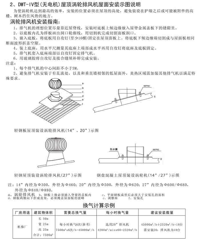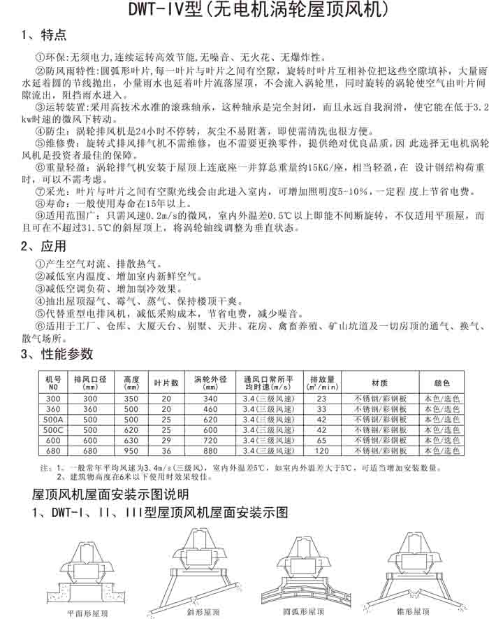 · 三、DWT-IV 系列無電機渦輪屋頂排風(fēng)機