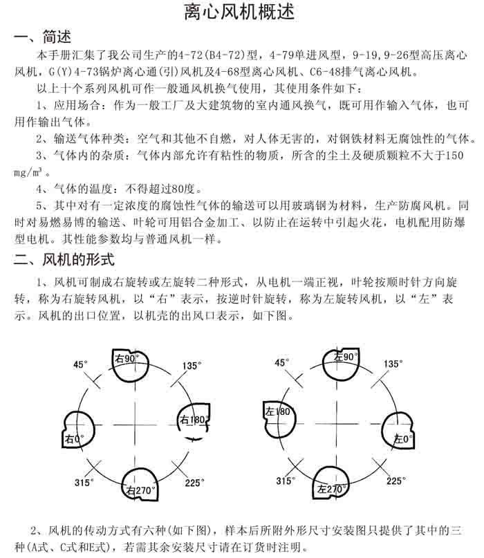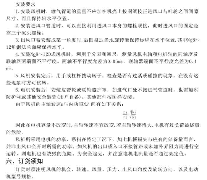 一、風(fēng)機(jī)選用參考、安裝維護(hù)使用說明、常見故障分析、訂貨注意事項(xiàng)