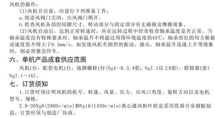 · 一、風(fēng)機(jī)選用參考、安裝維護(hù)使用說(shuō)明、常見(jiàn)故障分析、訂貨注意事項(xiàng)